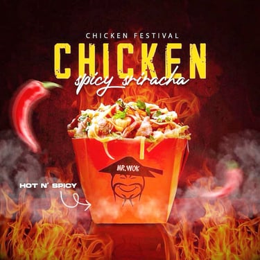 Spicy Sriracha Chicken and our signature Mr. Wok Beef noodles—we’re bringing the heat! 🔥 Get your festival favorites while they last.